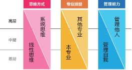 专业技能的此消彼长。随着职位的升高,与本专业领域以外的人和事的交互必然增多,完成工作时所需的其他专业领域的知识将逐渐变多。