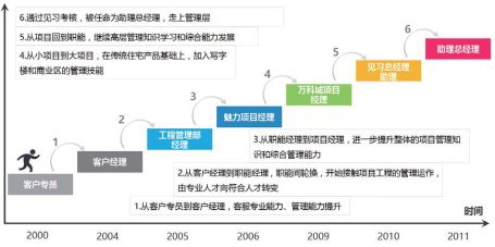 从魅力项目经理转岗为万科城项目经理可视为第三次轮岗,通过从管理小项目到管理大项目的转变,使其接受更大的挑战。