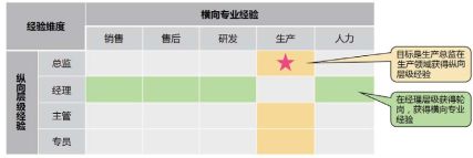 以人才培养为目的的轮岗需要选择一定职级的人。轮岗的目的是培养人才,因此轮岗人员的职级应该有所考虑,不建议安排基层员工轮岗,基层员工应在自己本专业领域发挥特长,展示自己的专业技能。例如图6中展示的生产总监的成长案例,该生产总监因其在专员、主管岗位上的出色工作表现被确定为值得培养的人,在经理级获得轮岗机会,最终被培养为生产总监。