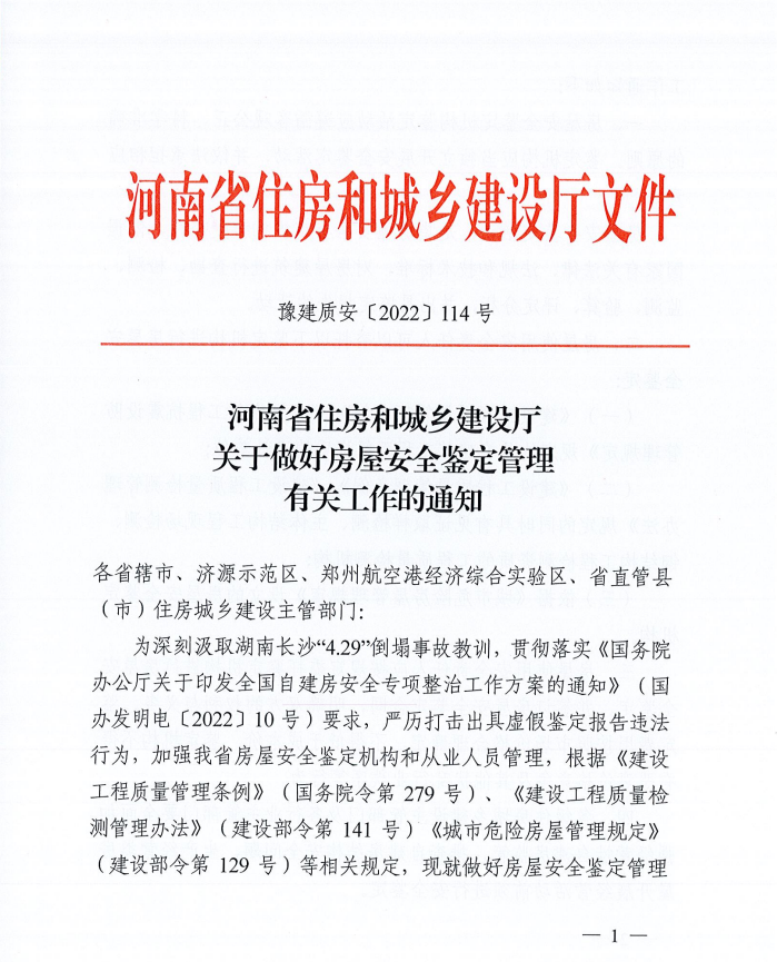 河南省住房和城乡建设厅关于做好房屋安全鉴定管理����� �������Ƴ������������ �������Ƴ������������ �������Ƴ������������ �������Ƴ�������有关工作的通知