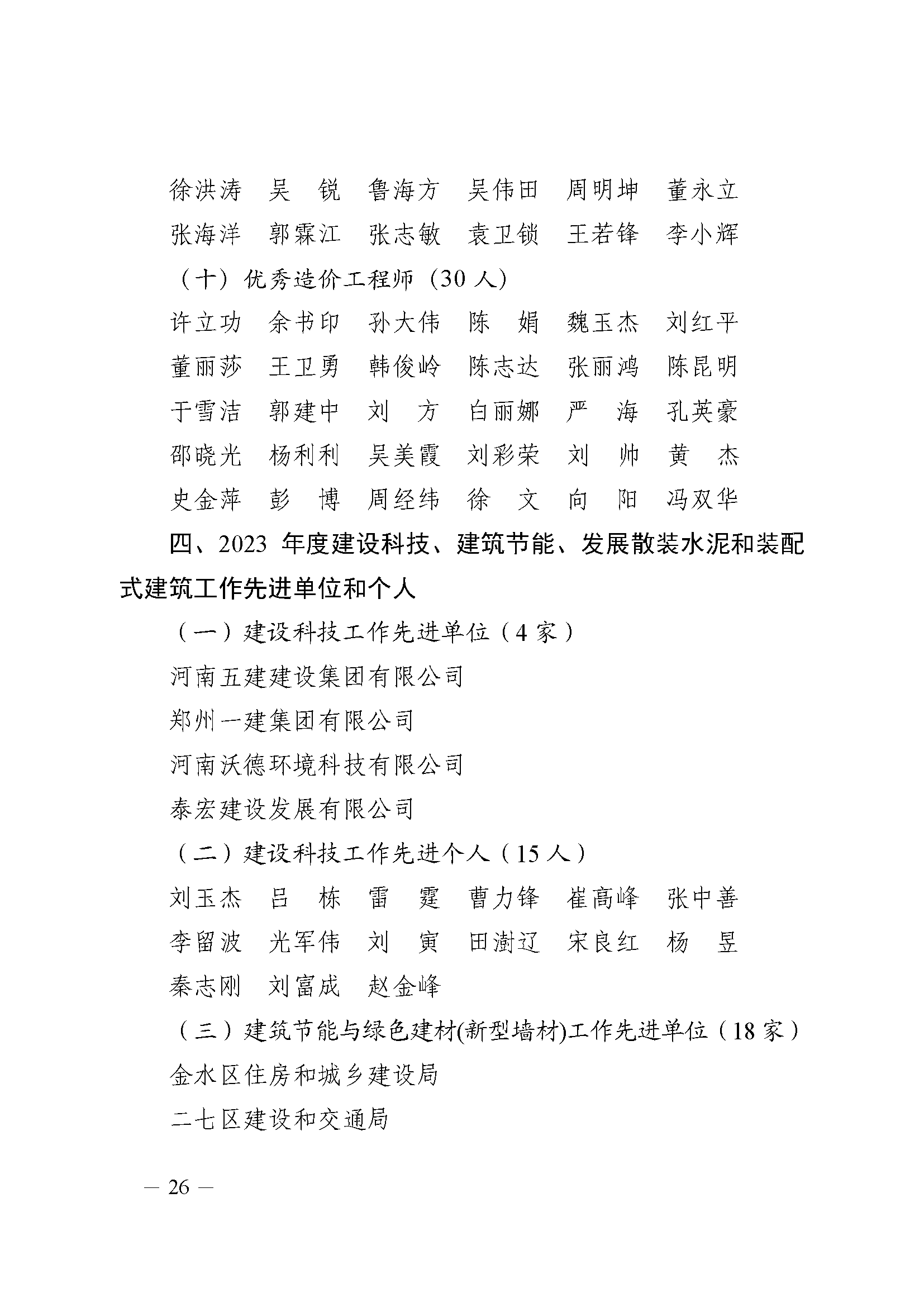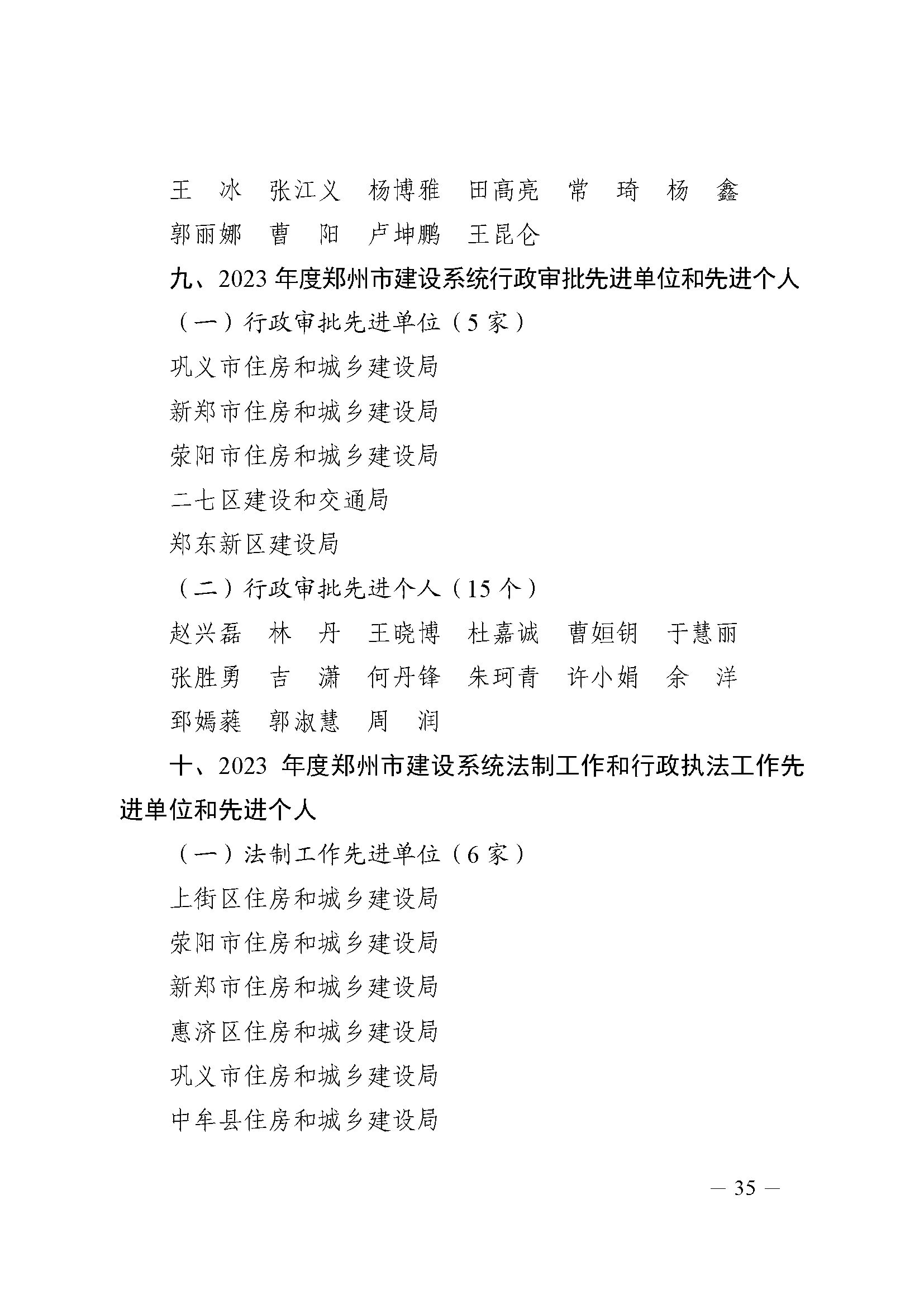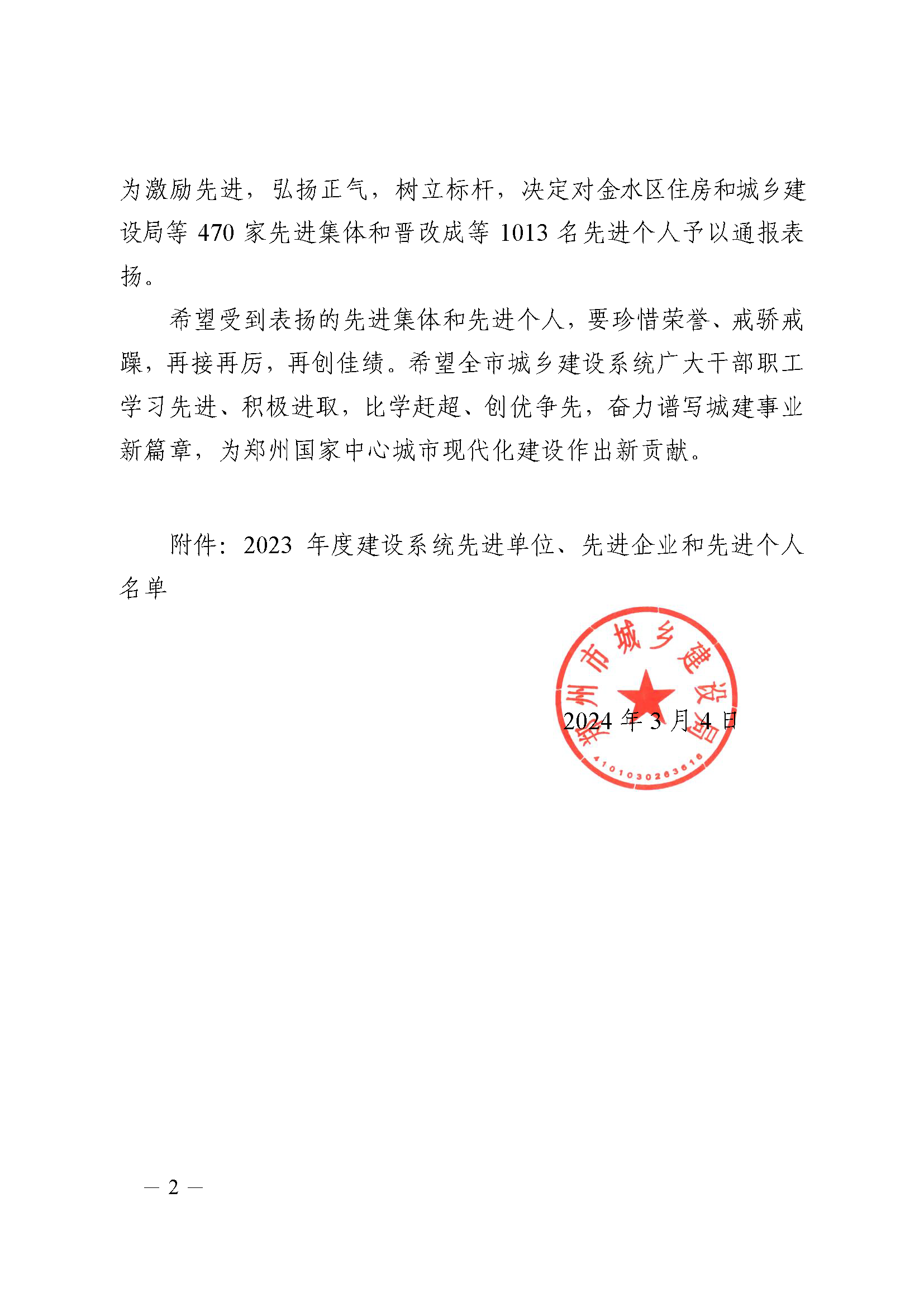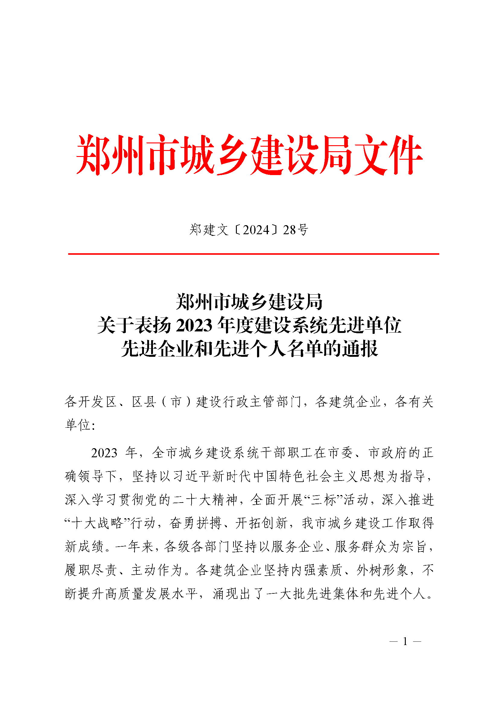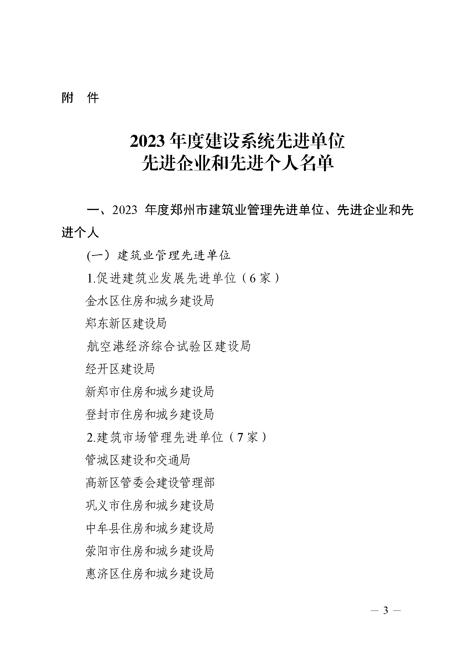 郑州市城乡建设局关于表扬2����� �������Ƴ������������ �������Ƴ����������� �������Ƴ������������ �������Ƴ�������023年度建设系统先进单位先进企业����� �������Ƴ����������� �������Ƴ������������ �������Ƴ������������ �������Ƴ�������和先进个人名单的通报